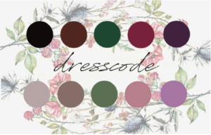 Obřad proběhne téměř z každého počasí, proto zvolte pohodlný drresscode. Na blízké kartičce můžete vidět barevnou paletu, do které bychom byli rádi, kdybyste se sladili.